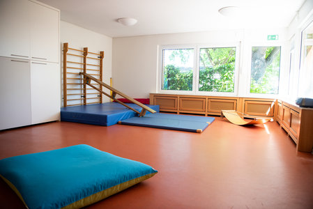 - Unser Turnraum wird von den Kindern gerne als Bewegungsraum genutzt. Hier können sich Kinder aus den Gruppen zum Toben und Spielen treffen.